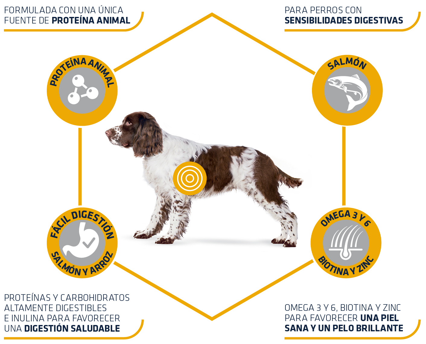 Advance Sensitive Medium/Maxi con salmón esta especialmente formulado para perros con sensibilidades alimentaria y adultos de raza mediana (+10 kg). La sensibilidad alimentaria puede manifestarse a través malas digestiones y de forma ocasional a través de síntomas cutáneos.