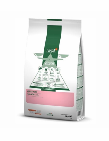 Libra Affinity Adult Mini con salmón, está elaborado para perros adultos de raza pequeña, su croqueta está especialmente adaptada a su estatura y forma de su boca, contiene la cantidad ideal de proteínas para el mantenimiento de su musculatura , ácidos grasos esenciales , vitaminas y minerales para el correcto mantenimiento de huesos y dientes y fibra.